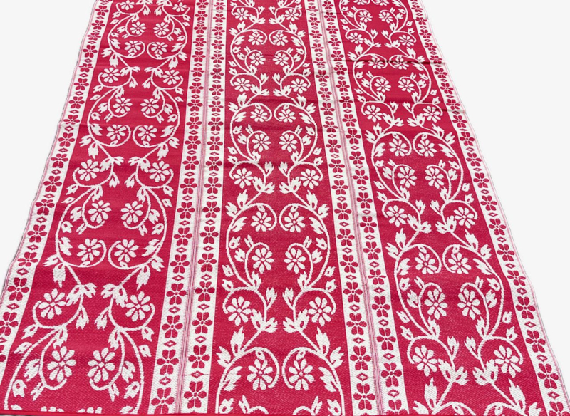 OverzichtHet plastic vloerkleed is gemaakt van geweven plastic rietjes en is eenvoudig met een vochtige doek en wat huishoud zeep schoon te maken. Prima te gebruiken als, tuinkleed, buitenkleed, picknick kleed, strandmat of vloerkleed voor in de voortent of voor op uw terras.