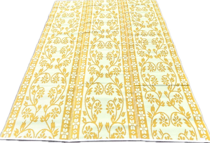 Plastic vloerkleed 270 x 360 cm (opvouwbaar), bloem, geel/wit